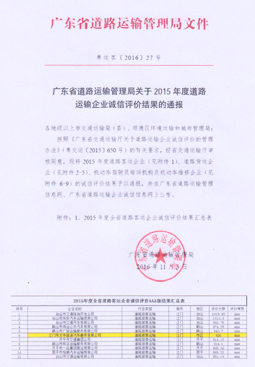 2016年3A质量信誉考核