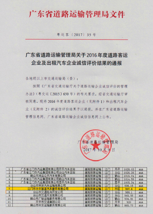 2017年3A质量信誉考核