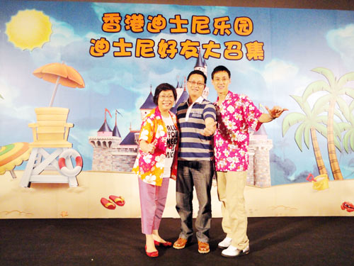香港迪士尼乐园销售及旅游市务副总裁何陈美红女士、大方旅游林超副总(中)、迪士尼广办主管SHINE