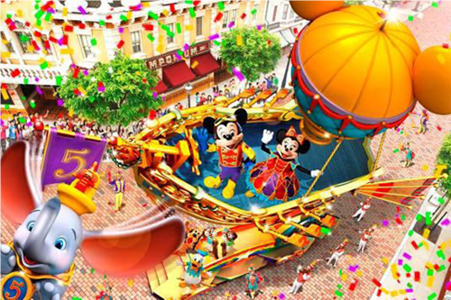 迪士尼巡游表演及一系列节庆巡游,一向深受宾客欢迎,此次五周年庆典上,创意更将飞跃至前所未有的新境界。全新互动的 “迪士尼飞天巡游” 将隆重登场,由米奇带领一众迪士尼朋友飞跃40 英尺的高空。每天,24 位备受青睐的迪士尼朋友将率领100 多位演艺人员组成的全新巡游队伍,于美国小镇大街上与宾客见面和互动。米奇飞船将会率先起飞,史迪仔与他的滑浪好友、“森林王子”及一众玩具总动员明星也将纷纷升空,在五彩缤纷的天空中列阵。宾客可以尽情投入这个充满互动元素的巡游表演,与迪士尼朋友及巡游队伍一同载歌载舞!