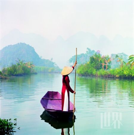 清晨,黛色山峦笼罩在轻纱缥缈的薄雾中,是略带神秘却又让人平静的神奇色彩。云开雾散时,衣裙生姿,画船摇曳,秀美的全部含义不就是这幅中南半岛的山河画卷么?