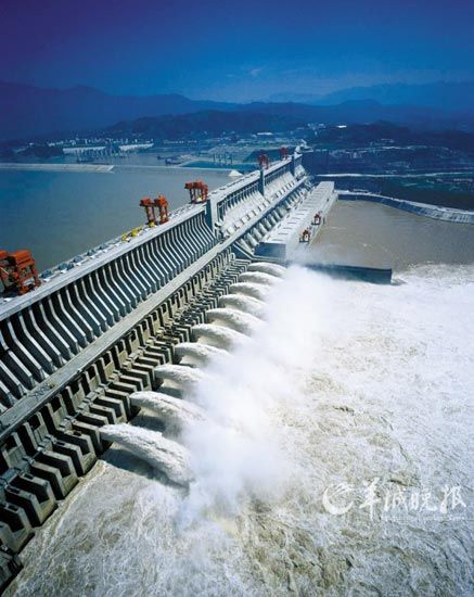 长江大坝泄洪(由长江三峡旅游发展有限责任公司提供)
