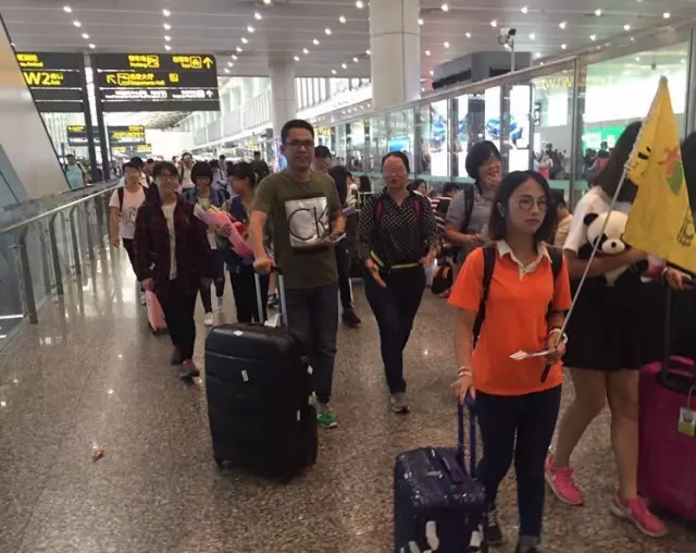 今天,我司于四川九寨沟的两个旅行团连同全陪导游一行16人,已按原定计划乘坐成都 - 广州航班,分别于今天凌晨00:40分和傍晚15:06分到达广州白云机场。我司派出华北业务公司总经理黄剑恒及旅游汽车服务公司总经理刘建良,为客人准备了食物、矿泉水、鲜花及横幅,提前在机场等候他们的平安归来。