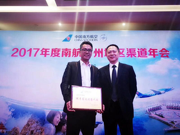 日前,在广州召开的“2017年南航广州地区渠道年会”上,我司再次获得中国南方航空股份有限公司颁发《2017年度优秀客运销售代理》奖。