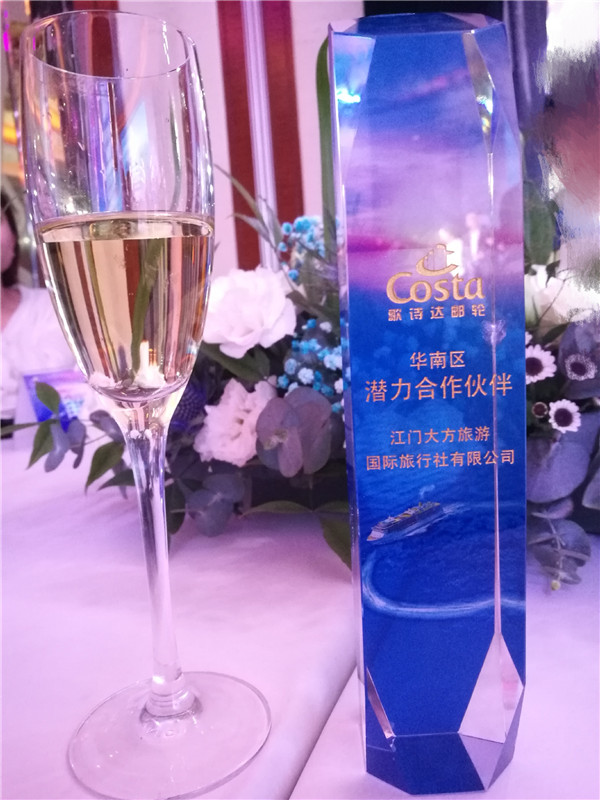 随后在3月14日“歌诗达邮轮华南区2018年度颁奖盛典”上,大方旅游荣获歌诗达邮轮“华南区潜力合作伙伴”!