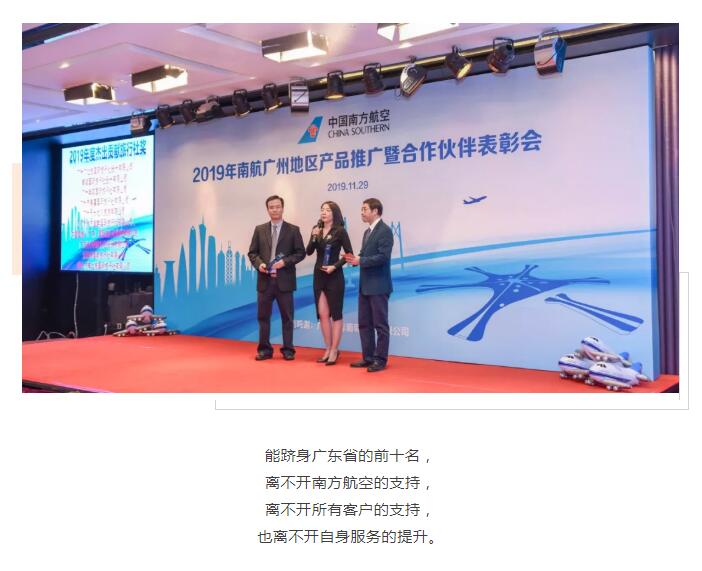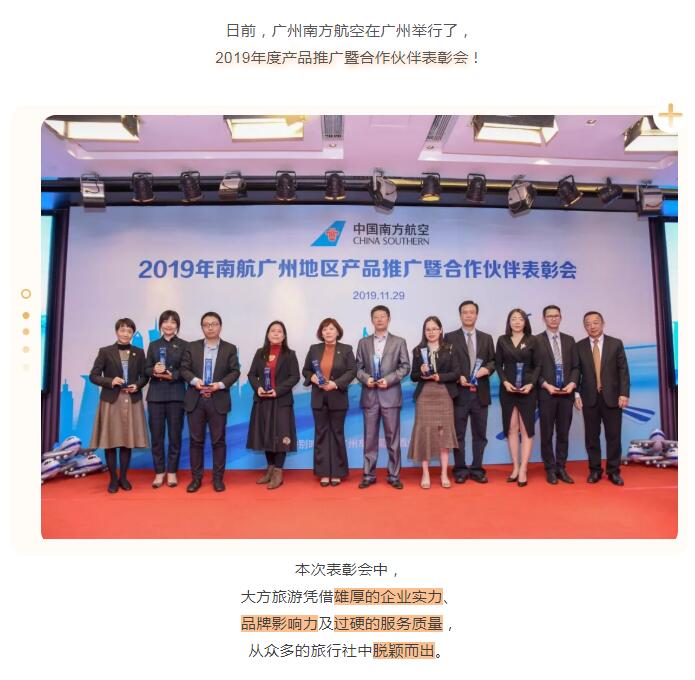 热烈祝贺大方旅游获得“中国南方航空2019年度杰出贡献旅行社”的殊荣
